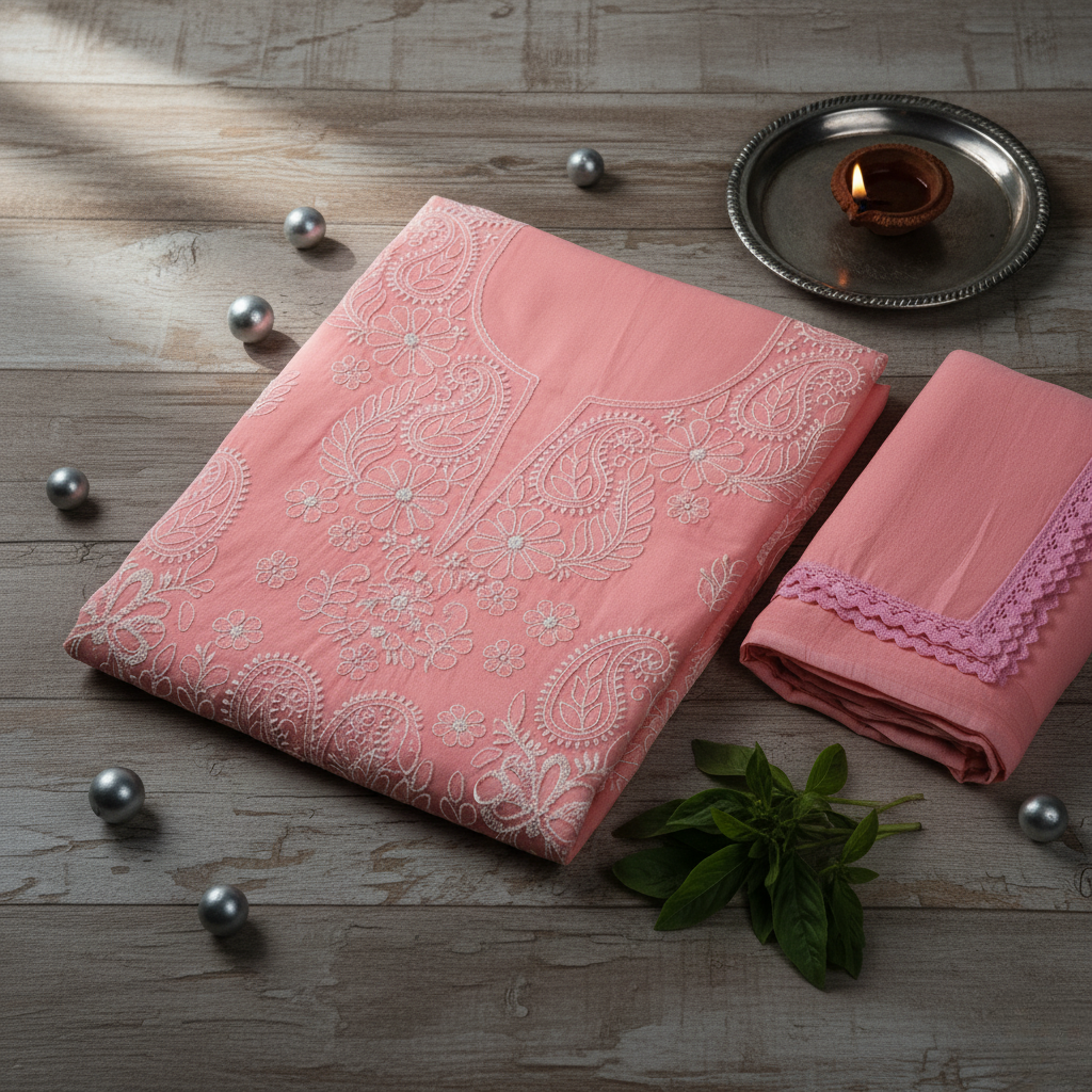 Pink Cotton Suit with Lucknowi Chikankari Embroidery